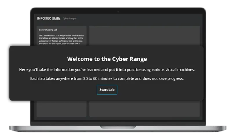 Skip the server racks and spin up a realistic environment with one click. Infosec Skills cyber ranges require no additional software, hardware or server space so your team can spend less time configuring environments and more time learning. Unlimited cyber range access is included in every Infosec Skills subscription so your team can skill up however they learn best.
